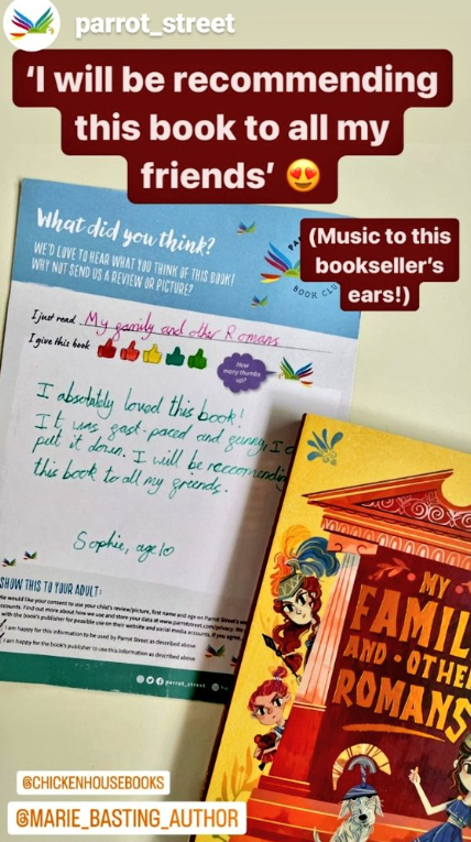 This month My Family and Other Romans is the Parrot Street Book Club book of the month. This means the book will be posted out to all Parrot Street Cockatoo members in their subscription box and is also available to purchase on the Parrot Street website along with a specially curated activity pack.