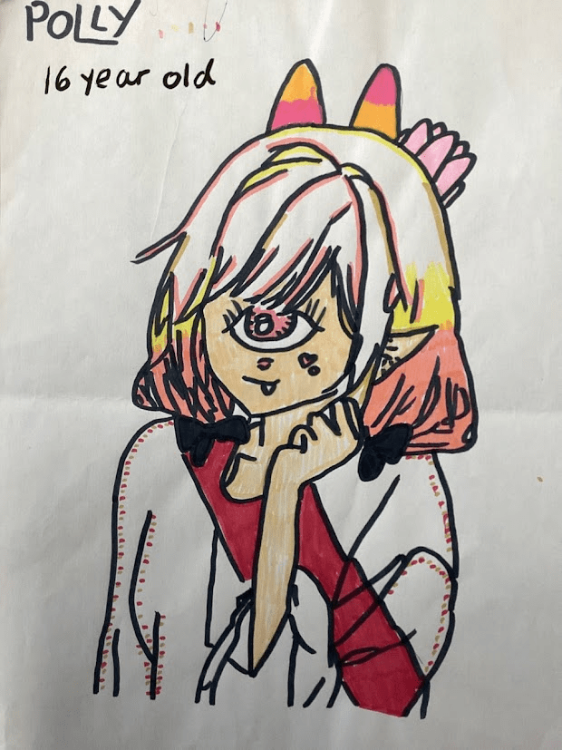 I particularly loved receiving this drawing of Poly the cyclops. In My Family and Other Romans, Polly is a toddler who likes to eat worms and suck kneecaps but here she’s been reimagined as a contemplative teenager. Mind-blowing!