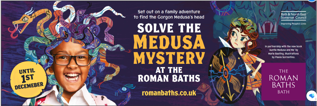 Auntie Medusa and Me recently had its very own museum trail at the prestigious Roman Baths, Bath. You can read more about the trail and the partnership with the Roman Baths in the Bath Echo.